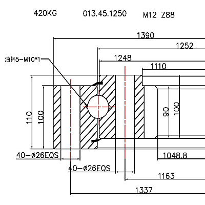 回轉(zhuǎn)支承選擇:實際使用承載力點 必須在承載能力曲線以下方可使用.